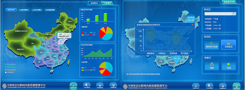 北京藍(lán)藍(lán)設(shè)計作品: 中國移動互聯(lián)網(wǎng)監(jiān)控大屏可視化設(shè)計及開發(fā)
