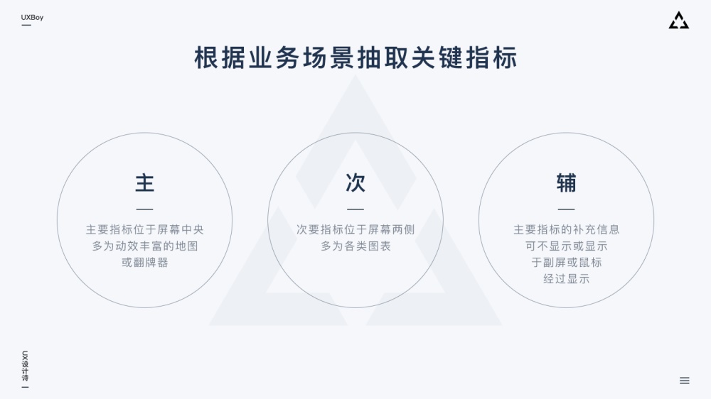 確定關(guān)鍵指標(biāo)后,根據(jù)業(yè)務(wù)需求擬定各個指標(biāo)展示的優(yōu)先級(主、次、輔)。