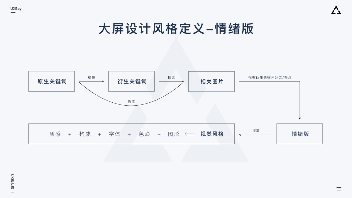 情緒板的一套流程下來,我們定義的風(fēng)格基本是科學(xué)準(zhǔn)確的,可以指導(dǎo)我們執(zhí)行設(shè)計。如果是給甲方做大屏,這個流程也可以讓我們提出的方案更有說服力。