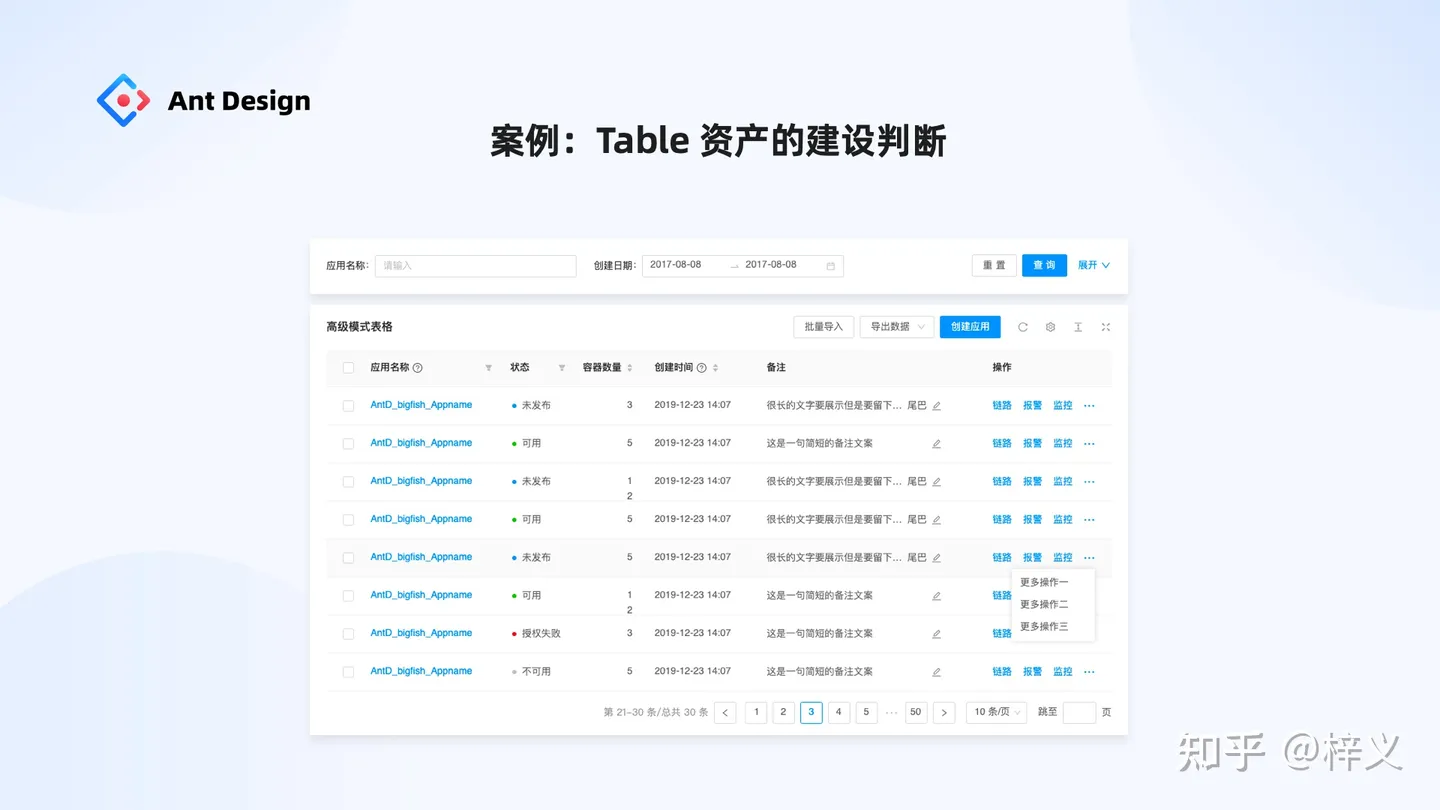 表格常用于展示同類結(jié)構(gòu)下的多種數(shù)據(jù),易于組織、對比和分析等,并可對數(shù)據(jù)進(jìn)行搜索、篩選、排序等操作。一般包括表頭、數(shù)據(jù)行和表尾三部分