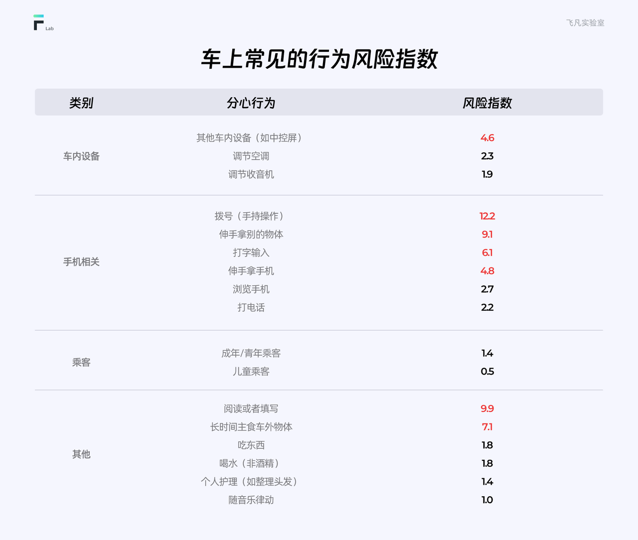 行為的緊迫性:行為是否需要立即執(zhí)行?如果不是緊急情況,駕駛員可以選擇將其推遲到安全的停車點(diǎn)?;谝陨弦蛩?,可以將分心動作的風(fēng)險指數(shù)劃分為不同的級別,例如低風(fēng)險、中風(fēng)險和高風(fēng)險。