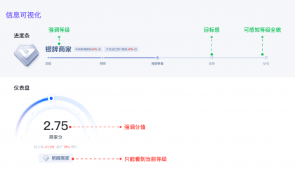 我們要強(qiáng)化商家的等級感知,通過視覺和交互引導(dǎo)等方式,強(qiáng)化商家對等級感知的重要性和影響。