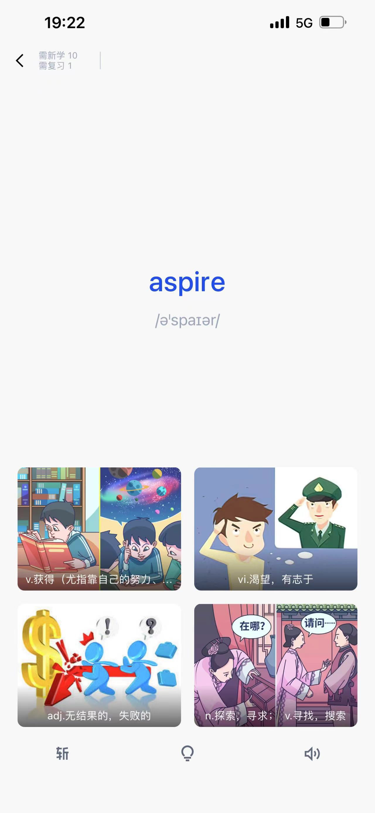 百詞斬左上角信息會(huì)展現(xiàn)背單詞的情況