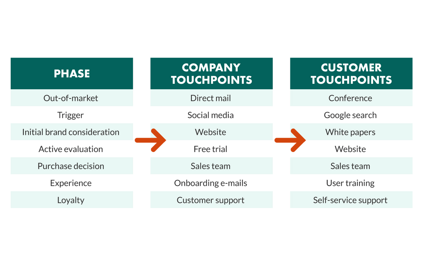 在下面的示例中,我們將基于 B2B 客戶的旅程來探索接觸點(diǎn)。