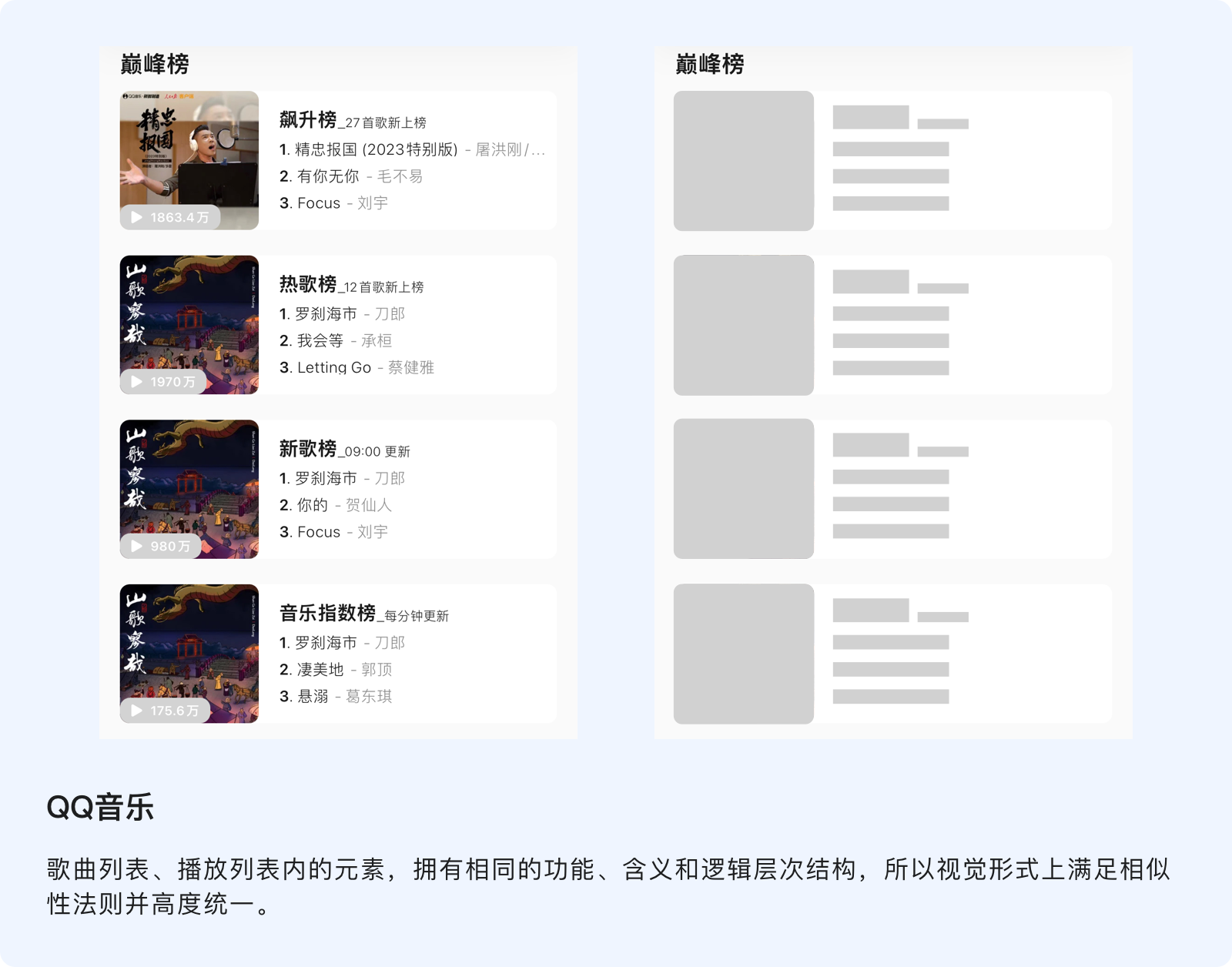 在UI中最常見的就是列表以及文字展示、圖文展示了,在列表頁(yè)信息多的時(shí)候,都會(huì)把功能趨于相似的放在一起,利用相近原理,使他們?cè)谝曈X上趨于一個(gè)整體,這樣既能讓界面功能清晰易懂,又不至于雜亂無(wú)章。