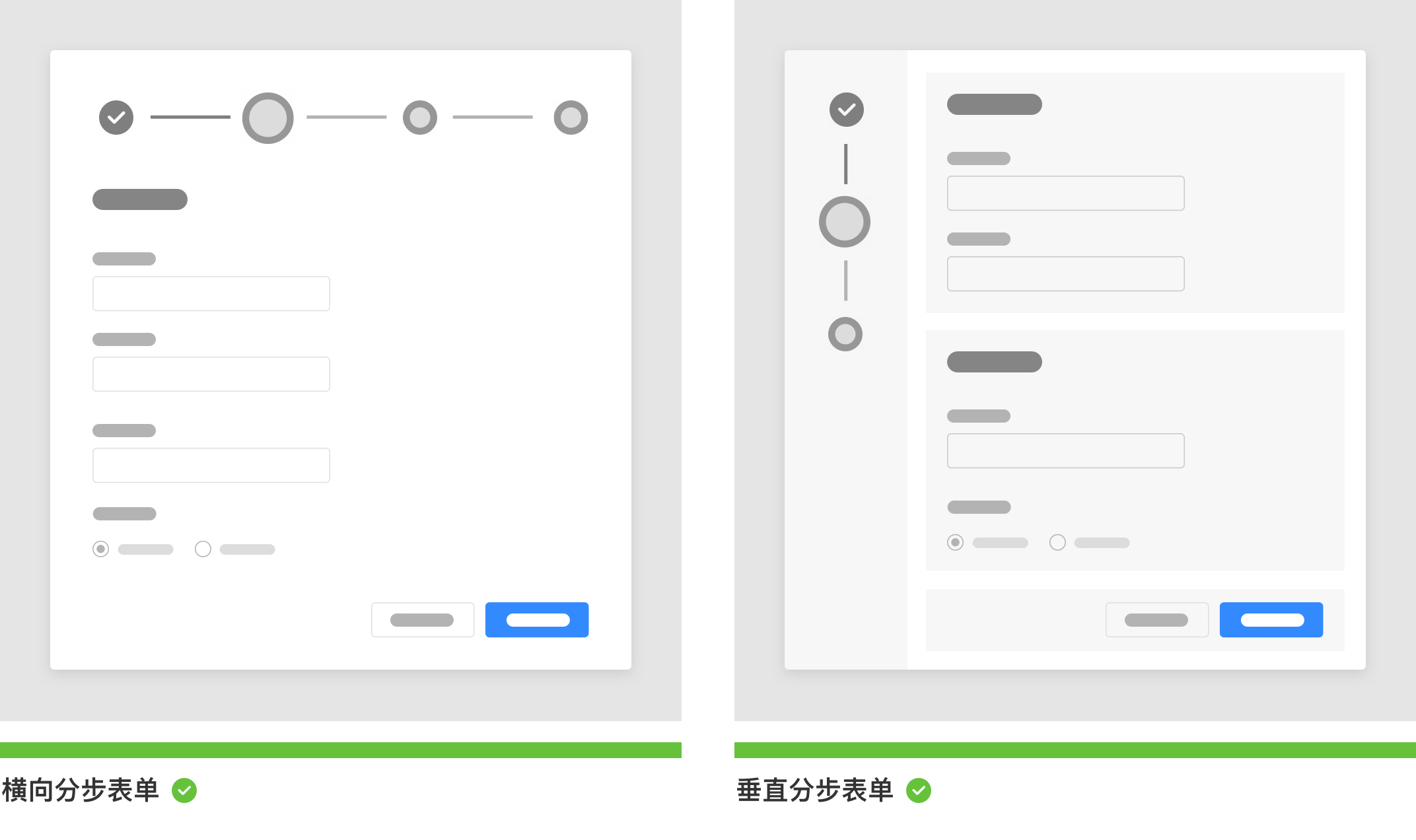 在設(shè)計(jì)師設(shè)計(jì)表單時(shí)可能業(yè)務(wù)場景復(fù)雜、字段較多,即使設(shè)計(jì)師把很多不必要的字段都刪除也解決不了根本問題。所以,這時(shí)候設(shè)計(jì)師需要將大型任務(wù)分解為一系列較小的任務(wù),使得表單更加的簡潔。這種方式的好處是能將步驟以視覺的方式傳達(dá)給用戶數(shù)量、名稱、說明等信息,更加提高用戶滿意度并且能激勵(lì)繼續(xù)填寫。