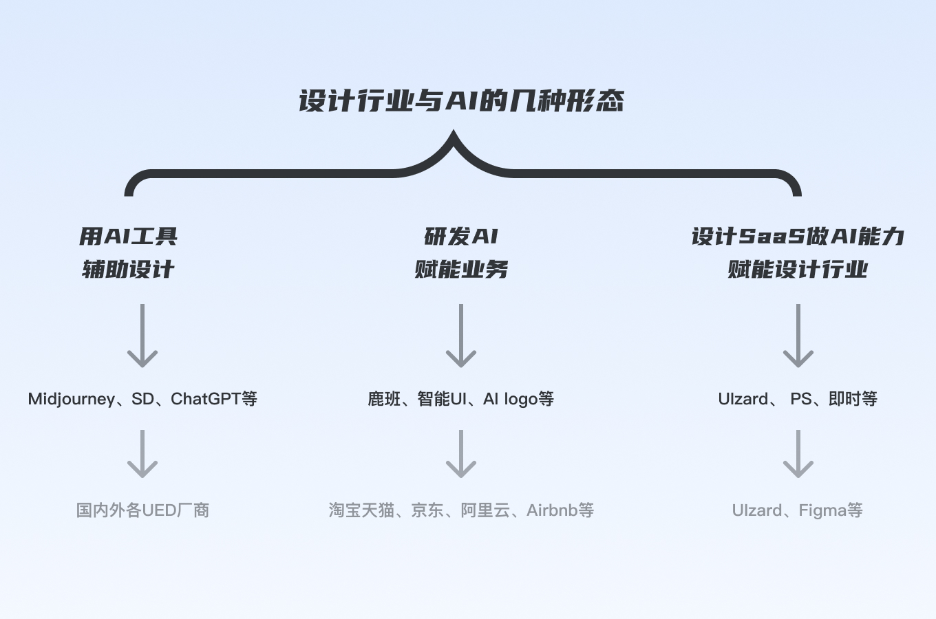 其實目前設(shè)計團隊或設(shè)計行業(yè)與AI的關(guān)系,可以歸納為3種形態(tài):