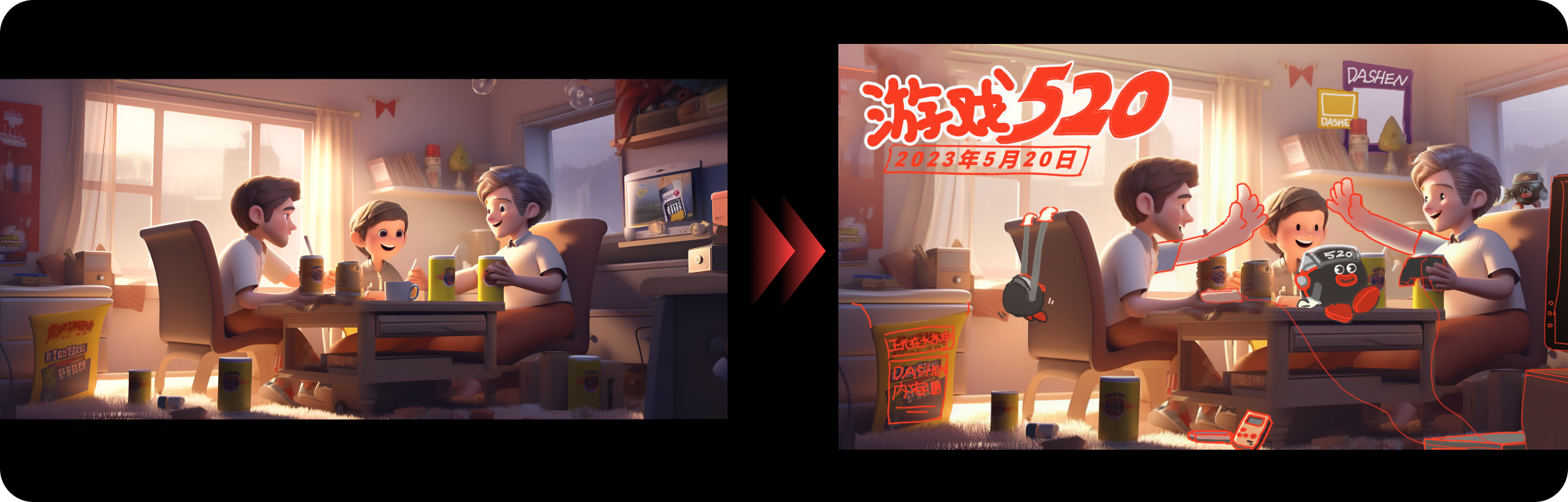 在此基礎(chǔ)上,我們進(jìn)一步優(yōu)化畫面,將畫面中一些不合理的元素運(yùn)用上述同樣的方式替換掉,并把文案擺放至畫面中看看整體的效果。如下圖所示: