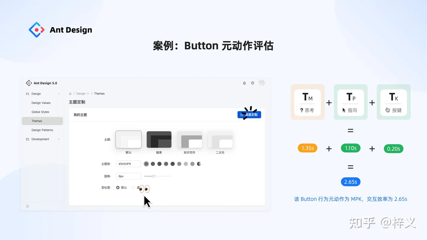 如此,我們定義了按鈕的交互行為序列為 MPK。更進一步,如果我們能測得這些元動作的交互效率,我們就能得到按鈕這個組件的交互質(zhì)量了。