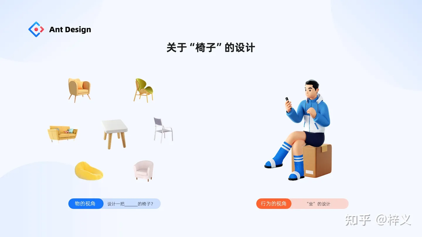 老師接著說,所謂椅子的設(shè)計,不是要我們?nèi)ニ伎家O(shè)計“什么顏色的椅子”、“什么材質(zhì)的椅子” 抑或 “什么形狀的椅子”。他希望我們回歸用戶去思考,設(shè)計椅子的初衷究竟是為了什么?是為了滿足用戶“坐”這個行為目的。