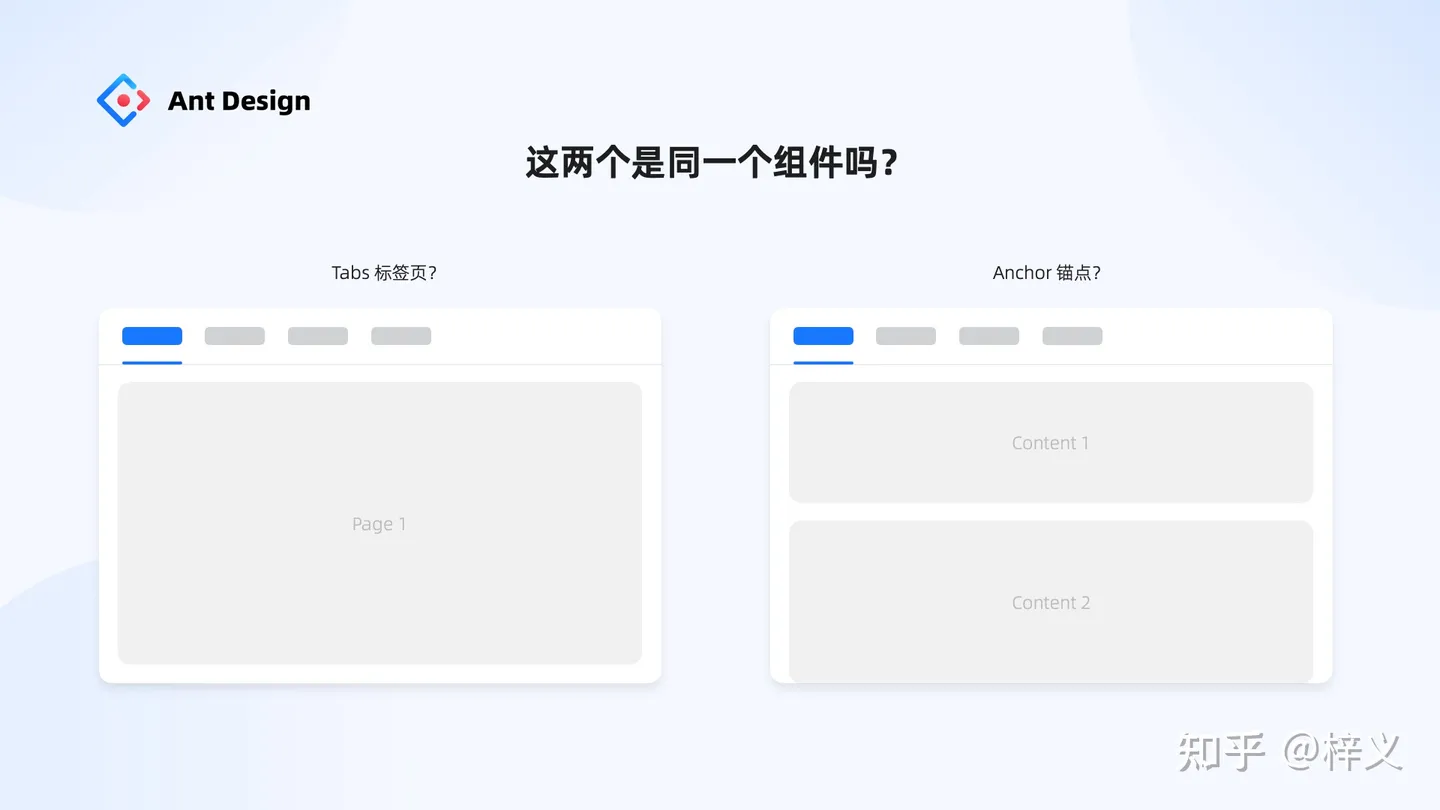 第一個問題,有兩個組件,左邊用來控制頁面間切換,右邊用來定位頁面內(nèi)內(nèi)容,它們在樣式上一模一樣,請問,在設(shè)計系統(tǒng)里應(yīng)將它們歸為一類組件嗎?