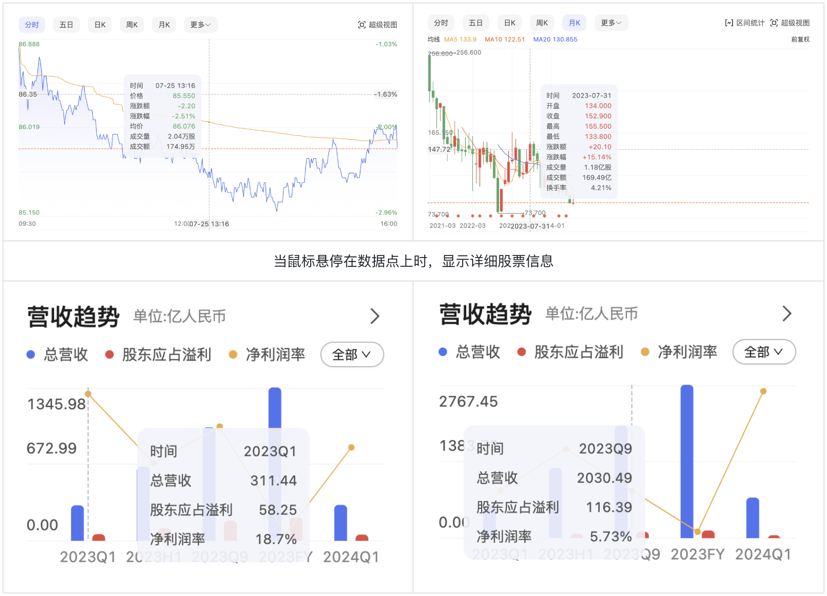 為用戶提供工具提示(hover tooltips)是一種行之有效的設(shè)計策略,在股票界面中尤為重要。當(dāng)用戶將鼠標懸停在股票相關(guān)的數(shù)據(jù)點上時,隨即顯示出詳細的信息,比如具體的股價數(shù)值、漲跌百分比或者相關(guān)的專業(yè)注釋。