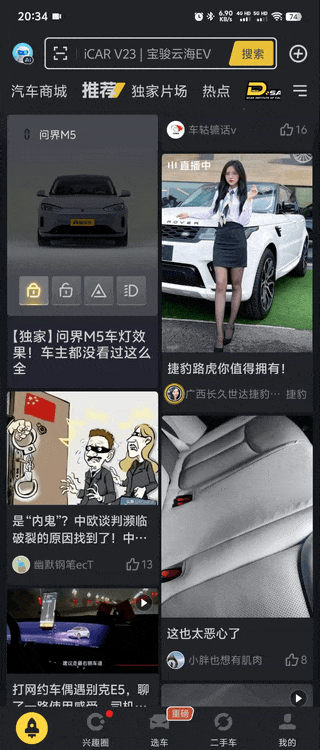如今各大 APP 的信息流千篇一律,都是圖文、視頻、廣告的組合,用戶在不斷滑動(dòng)中逐漸失去了新鮮感。懂車帝巧妙地為了推廣自家的在線 3D 看車功能,為信息流帶來了全新玩法!他們在首頁信息流中嵌入了可交互的 3D 汽車模型,這種既能觀看又能操作的創(chuàng)新形式,與傳統(tǒng)的圖文視頻形式形成鮮明對比,立即吸引了用戶的注意力,讓人忍不住想要嘗試。
