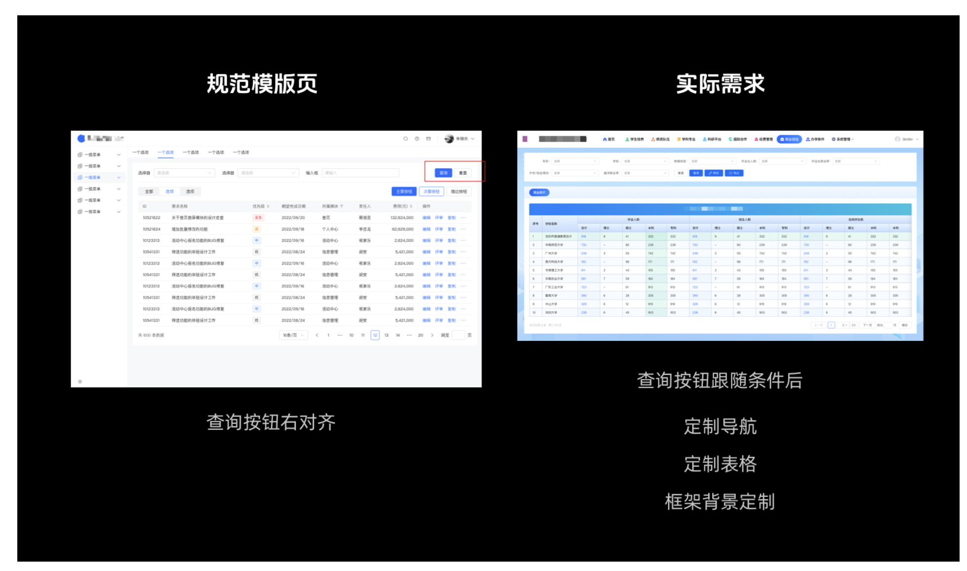 在團隊內(nèi)部,我們已確立了一套設(shè)計規(guī)范,在日常項目中使用設(shè)計規(guī)范輸出變的高效、統(tǒng)一。然而,在實際操作中,不可避免地會遇到一些特殊情況:某些客戶提出的個性化需求并不完全契合既定的設(shè)計規(guī)范,這些促使我們不得不在保持設(shè)計一致性的基礎(chǔ)上進行靈活調(diào)整。因此,深入反思并優(yōu)化一致性原則的應(yīng)用策略顯得尤為重要。我們需要探索如何在堅守設(shè)計規(guī)范核心精神的同時,靈活應(yīng)對多變的需求,確保設(shè)計既保持統(tǒng)一和諧,又能滿足特定場景下的獨特需求,從而實現(xiàn)用戶體驗與品牌價值的雙重提升。