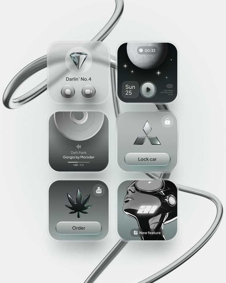 玻璃擬態(tài)是一種通過“毛玻璃”質(zhì)感制造層次感的視覺風(fēng)格,它的核心在于“透明而不完全透明”。背景虛化、低飽和的色彩疊加、加上一點(diǎn)高光和邊緣描邊,讓界面看起來像一塊塊懸浮的玻璃板——清透、未來感強(qiáng),但又保有一定的視覺秩序。