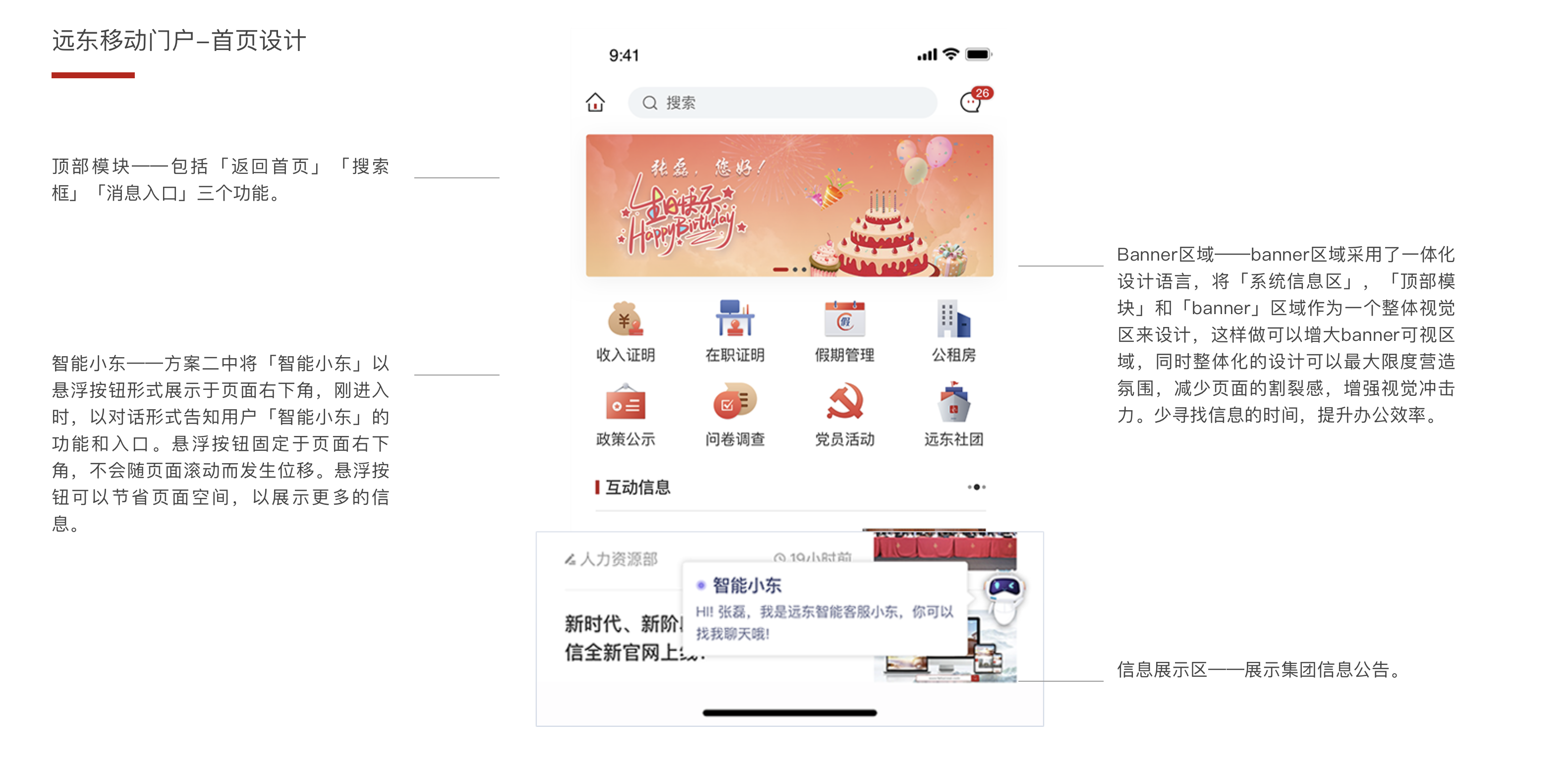 遠東移動門戶APP-人力資源模塊包含收入證明、在職證明、假期管理、公租房、政策公示等,同時將互動信息在集團公告區(qū)互動展示,實現(xiàn)人員管理、交流協(xié)同化和一體化。使集團工作更便捷、高效,組織管理更透明化,合理化。