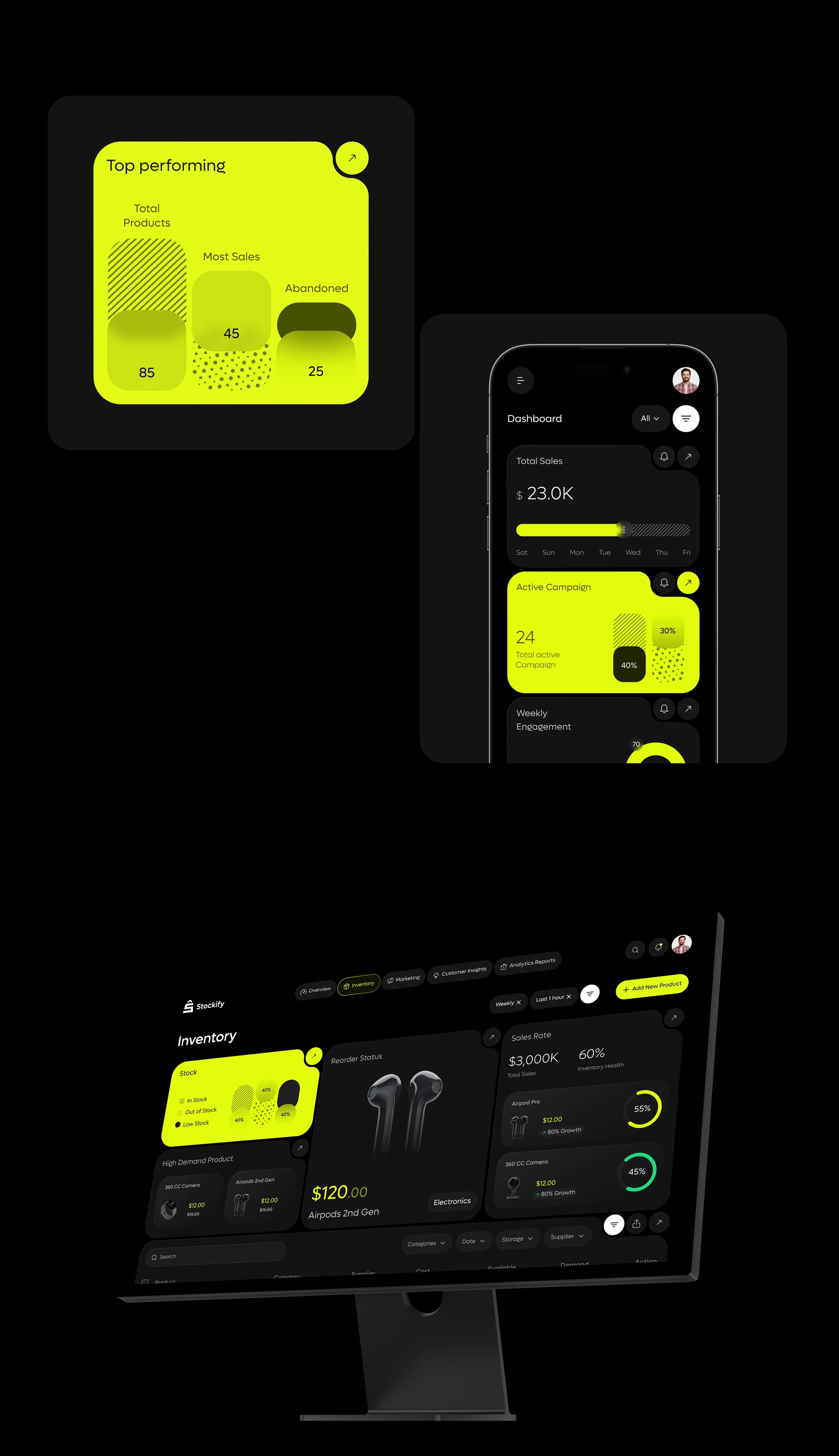 在信息密集的 B 端 SaaS 產(chǎn)品中,如何用清晰、節(jié)制而具有未來(lái)感的設(shè)計(jì),提升用戶的效率和信任感?Stockify 的界面是一個(gè)值得研究的參考。一款聚焦 AI 推薦和智能庫(kù)存管理的電商 SaaS 工具。這類產(chǎn)品的設(shè)計(jì)挑戰(zhàn)在于 —— 如何讓用戶信任 AI 決策,并在復(fù)雜的信息中快速做出行動(dòng)。它不是做“好看”的界面,而是通過界面?zhèn)鬟_(dá)控制感與專業(yè)感。