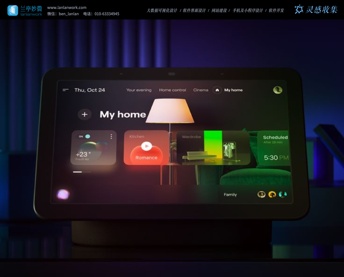 交互邏輯上,實現(xiàn) “直覺化” 與 “場景化” 雙驅(qū)動。所有操作以按鈕、滑塊等直觀控件呈現(xiàn),同時通過 “回家、影音” 等場景卡片,將功能控制升級為場景體驗,讓用戶從 “操作設(shè)備” 轉(zhuǎn)向 “享受生活”。且界面隨平板、墻面控制屏等終端形態(tài)調(diào)整,保持交互邏輯一致性,體現(xiàn)多端協(xié)同設(shè)計前瞻。