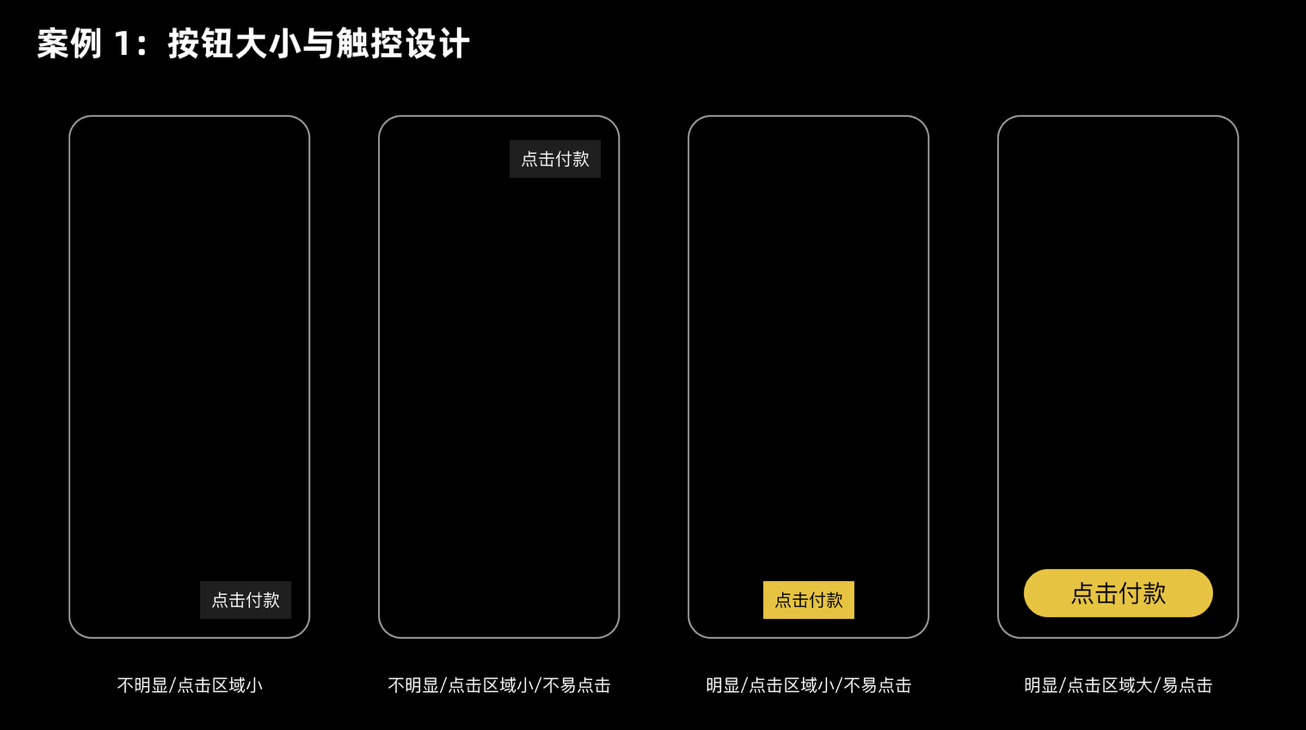 它的優(yōu)勢很明顯:首先能直接優(yōu)化操作效率,通過調(diào)整目標的距離和大小,讓用戶更快完成操作,減少挫敗感;其次能指導界面布局,比如確定導航、按鈕的位置,避免 “想點的找不到,不想點的總誤觸”;還能提升設計的包容性,更大的目標和更近的距離,對老人、手指不靈活的用戶更友好;同時它提供了定量依據(jù),設計師可以通過調(diào)整 D 和 W 來測試操作時間,讓設計決策更科學,不是 “憑感覺”。