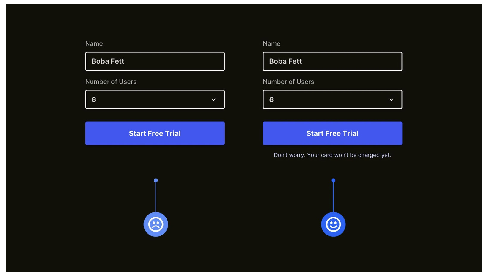 用戶對 “未知操作” 會有天然顧慮:點擊 “免費試用” 后,會不會自動扣費?填寫手機號后,會不會收到垃圾短信?這些顧慮會讓他們猶豫是否點擊 CTA(行動召喚)按鈕。