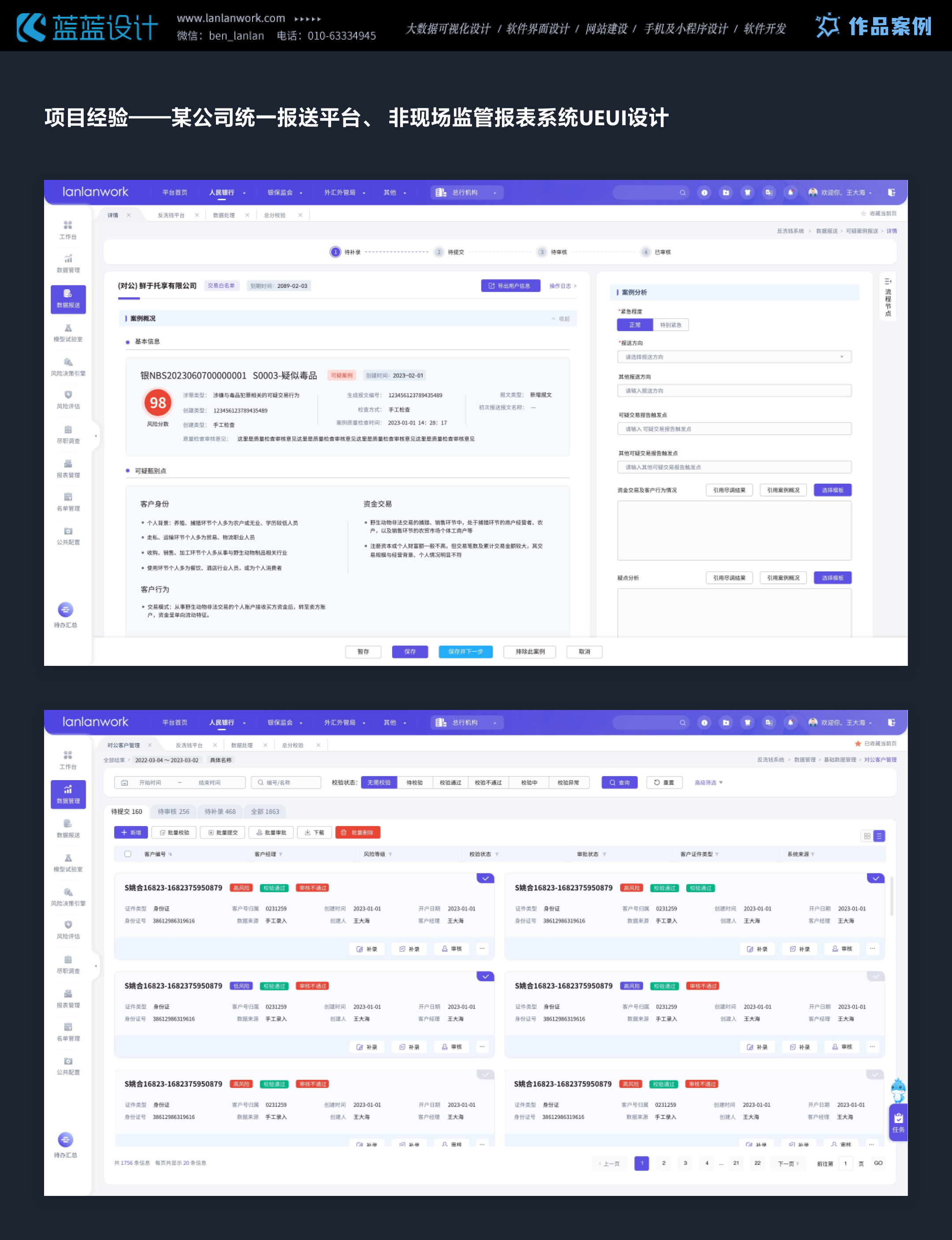 作為企業(yè)級(jí)監(jiān)管系統(tǒng)的設(shè)計(jì)案例,藍(lán)藍(lán)設(shè)計(jì)的本次實(shí)踐證明:專業(yè)場(chǎng)景下的系統(tǒng)設(shè)計(jì),不是 “功能的堆砌”,而是基于工作流程的體驗(yàn)重構(gòu)—— 通過界面布局、交互邏輯的優(yōu)化,讓復(fù)雜的合規(guī)工作變得 “高效、清晰、可控”。