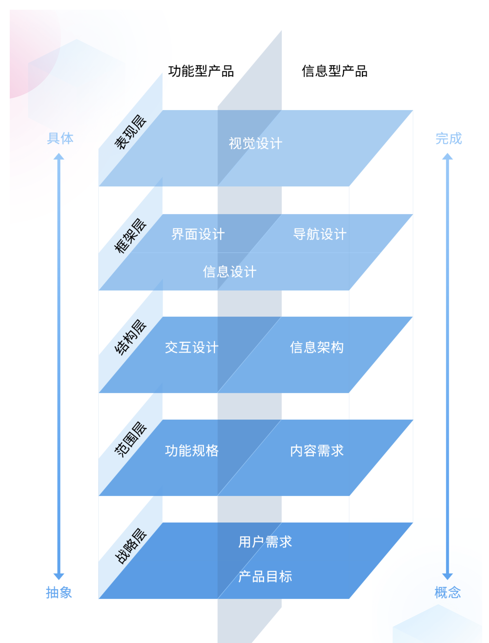 無論 UX 設(shè)計的形式如何變化,其核心框架始終圍繞《用戶體驗要素》提出的戰(zhàn)略層、范圍層、結(jié)構(gòu)層、框架層、表現(xiàn)層五個層級展開。這五個層級從抽象到具體、從概念到落地,構(gòu)成了 UX 設(shè)計的完整邏輯體系,既是分析產(chǎn)品的工具,也是從 0 到 1 打造產(chǎn)品的核心方法論。