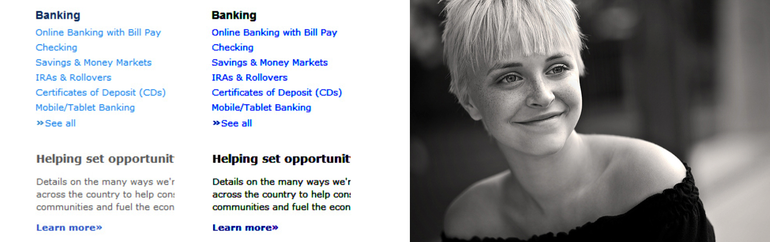 當(dāng)一個頁面必須呈現(xiàn)大段不可刪除的文字、圖片時,保證可讀性是一大難題,這時我們就需要相機行事、變相留白,在色彩傾向上調(diào)整,拉開明暗對比,比如說讓大片圍繞標(biāo)題文字顏色變灰變淺,是凸顯標(biāo)題的有效辦法。