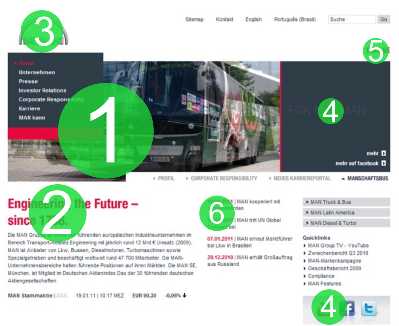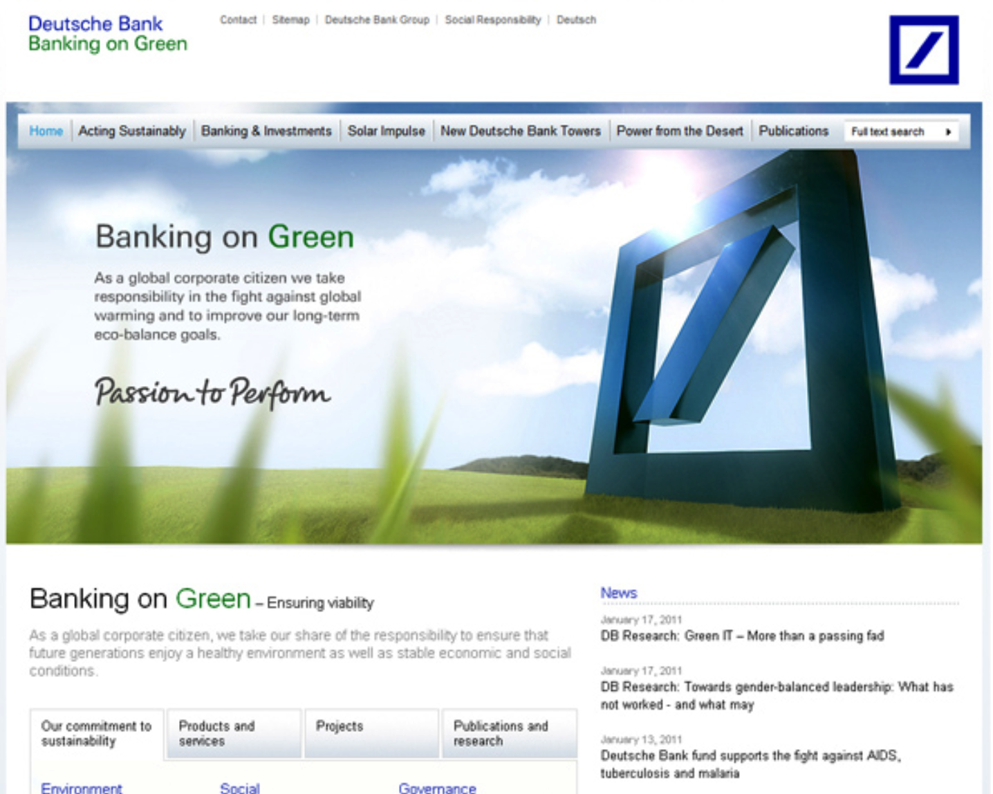 DB對文字色彩的運用,幾乎沒有純黑,也在綠色、藍(lán)色中滲入灰色,同時減少圖片的純度,增大對比度。使整個網(wǎng)站看起來沉靜穩(wěn)重。