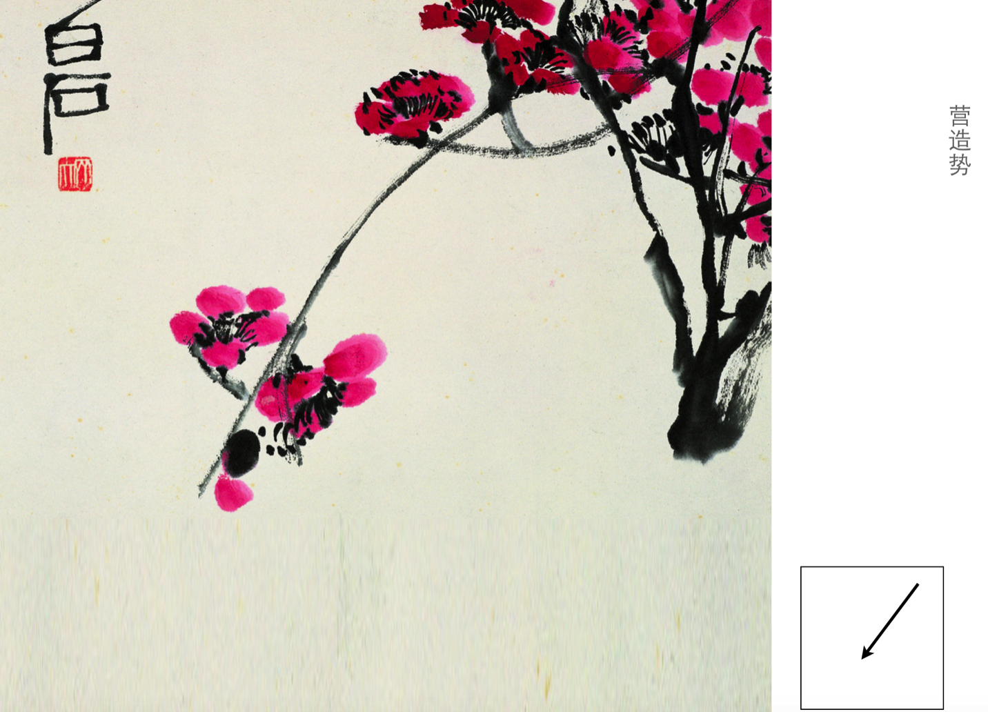 當(dāng)文字小而成行,視覺上就形成了“線”,而圖標(biāo)為“點”,人們的閱讀習(xí)慣使成行的文字具有向右擴張的趨勢,這種趨勢同國畫的“勢”一樣的道理。