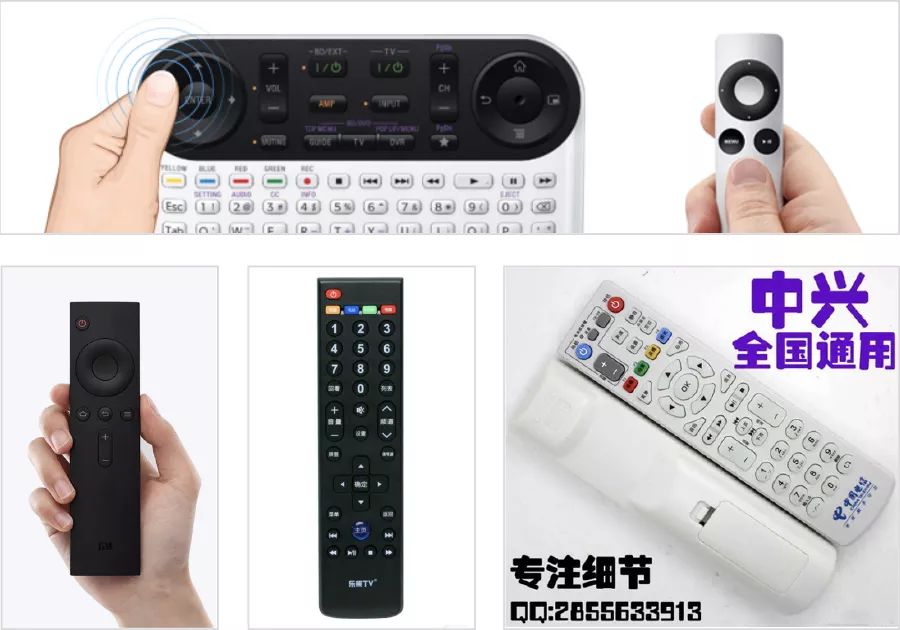 當(dāng)我們用手指快速便捷地在手機屏幕上點擊或滑動時,主流電視大屏及應(yīng)用的操作還是:使用遙控器進行操作。而市面上不同電視生產(chǎn)商生產(chǎn)的遙控器也有著不同的造型和按鍵數(shù)量,如圖1,分別展示了:蘋果、谷歌、小米、樂視和中興機頂盒的遙控器。