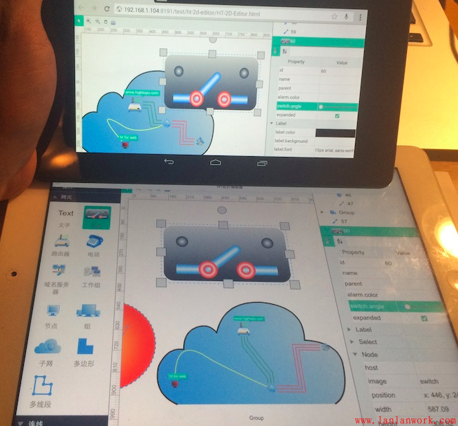 HT 提供了各種豐富的通用組件,以及復(fù)雜的拓?fù)鋱D編輯交互插件 http://www.hightopo.com/guide...,用戶(hù)分分鐘可以快速開(kāi)發(fā)出各種各樣的編輯器工具。入門(mén)手冊(cè)中也有個(gè) http://www.hightopo.com/guide... 簡(jiǎn)單的編輯器例子,教用戶(hù)如何自定義創(chuàng)建節(jié)點(diǎn)、連線和多邊形的示例教材,學(xué)習(xí)自定義拓?fù)鋱D交互可從此例子入手。