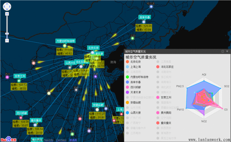 HT 的拓?fù)鋱D的節(jié)點(diǎn)位置都是邏輯坐標(biāo),并非 GIS 的地理信息經(jīng)緯度坐標(biāo),但這并不妨礙 HT 的拓?fù)鋱D可以和百度地圖、GoogleMap、OpenLayers 等第三方 GIS 地圖引擎進(jìn)行整合呈現(xiàn),參見(jiàn)《百度地圖、ECharts整合HT for Web網(wǎng)絡(luò)拓?fù)鋱D應(yīng)用》,該文將 HT 拓?fù)鋱D、百度地圖、ECharts、HT 連線流動(dòng)和面板等插件做了個(gè)綜合的呈現(xiàn)展示效果:http://www.hightopo.com/demo/...