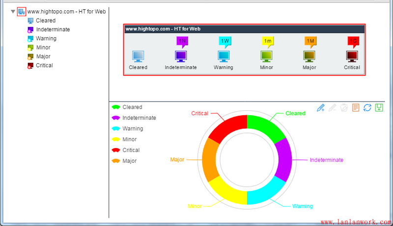 當(dāng)然你也可以把 HT 與 百度 ECharts 進(jìn)行整合,只要是 HTML 圖形組件就可以整合到 HT 的布局容器中,可參考《ECharts整合HT for Web的網(wǎng)絡(luò)拓?fù)鋱D應(yīng)用》,此例子將 ECharts 整合 HT 拓?fù)鋱D做了告警統(tǒng)計(jì)的圖表呈現(xiàn)效果: