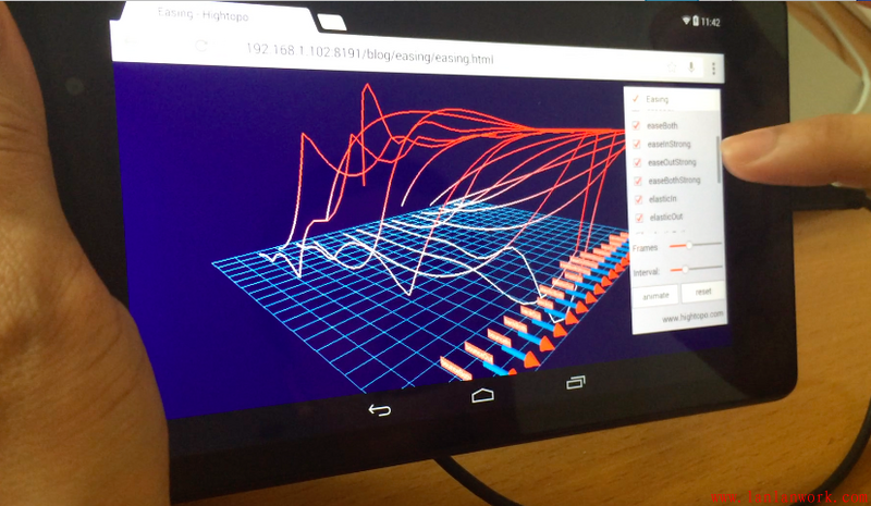 例如 http://www.hightopo.com/guide... 中的 ht.Default.startAnim 函數(shù),該函數(shù)支持 Frame-Based 和 Time-Based 兩種方式的動(dòng)畫(huà),為了理解其中的 Easing 參數(shù)可參見(jiàn) 《透過(guò)WebGL 3D看動(dòng)畫(huà)Easing函數(shù)本質(zhì)》文章和 http://www.hightopo.com/guide... 這個(gè)例子