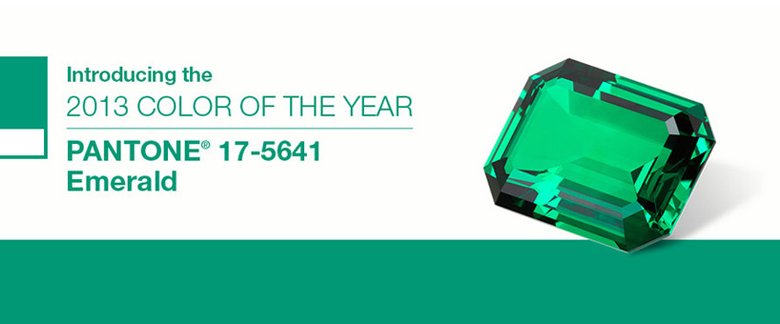色彩公司pantone 最近選擇了綠寶石色(emerald :17-5641 )作為2013 年的年度顏色,在他們的描述中,綠寶石色“ 生動,光芒四射,有魅力…… 是一種代表了優(yōu)雅和美麗的顏色,加強了我們個人的自然存在感,帶給我們平和心態(tài)” 。