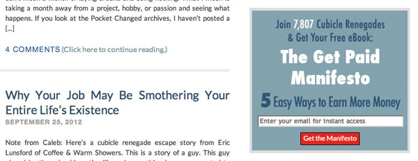 Pocket Changed的訂閱表單是個(gè)不錯(cuò)的例子,他們向訪問(wèn)者展示了當(dāng)前已有多少人進(jìn)行了訂閱下載;此外,他們也非常簡(jiǎn)單直接的讓訪問(wèn)者了解到在填寫(xiě)郵箱后可以得到什么。如果可以再加入一些來(lái)自真實(shí)訂閱用戶的贊許反饋,這個(gè)表單的轉(zhuǎn)化效果會(huì)更好。