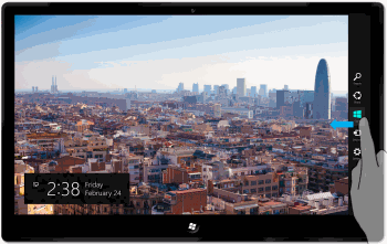 下面兩張圖片分別演示了調(diào)出app bar和charms bar的方法: