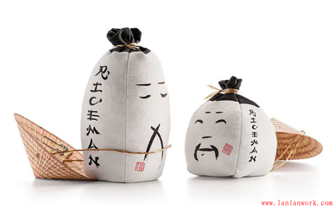 包裝外形以亞洲稻農(nóng)戴蓑帽的傳統(tǒng)形象為原型,圓錐形帽子紙盒蓋子內(nèi)側(cè)則巧妙與標(biāo)記測(cè)量米量的米杯結(jié)合,實(shí)用又環(huán)保。兩種不同尺寸的袋子分別裝盛不同的大米類型:短粒米為小袋子,長(zhǎng)粒米為高袋子。