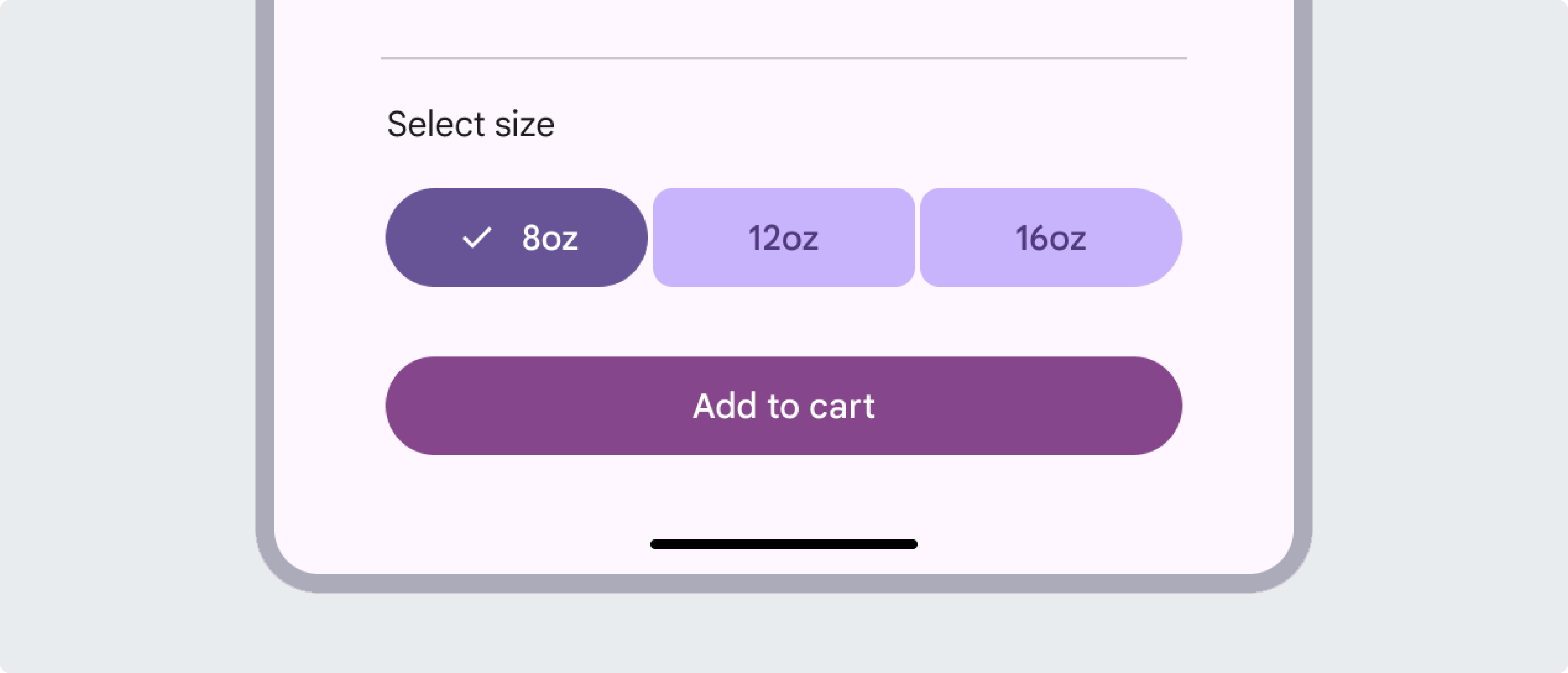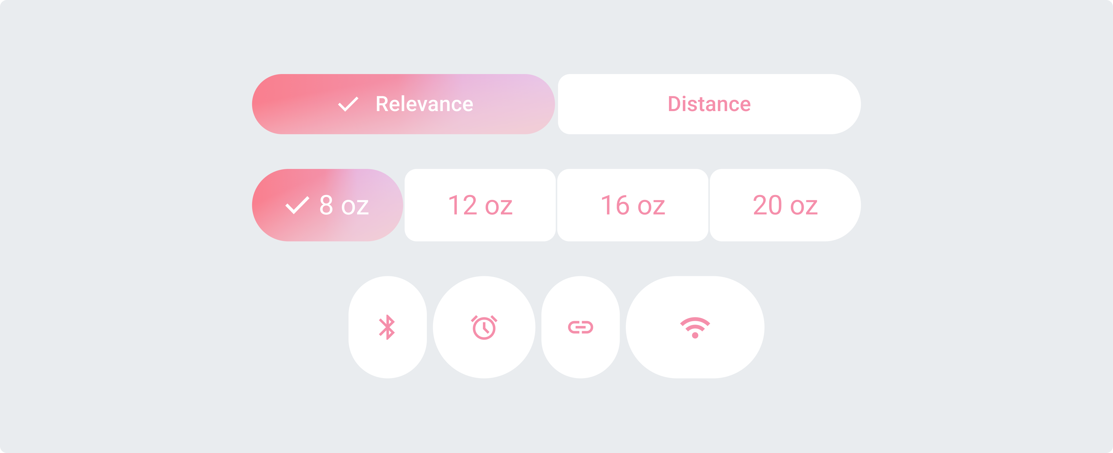 如果按鈕內(nèi)容彼此關(guān)聯(lián)且可選,請(qǐng)使用鏈接按鈕組。在購(gòu)物應(yīng)用中,鏈接按鈕組用于選擇商品的容量,