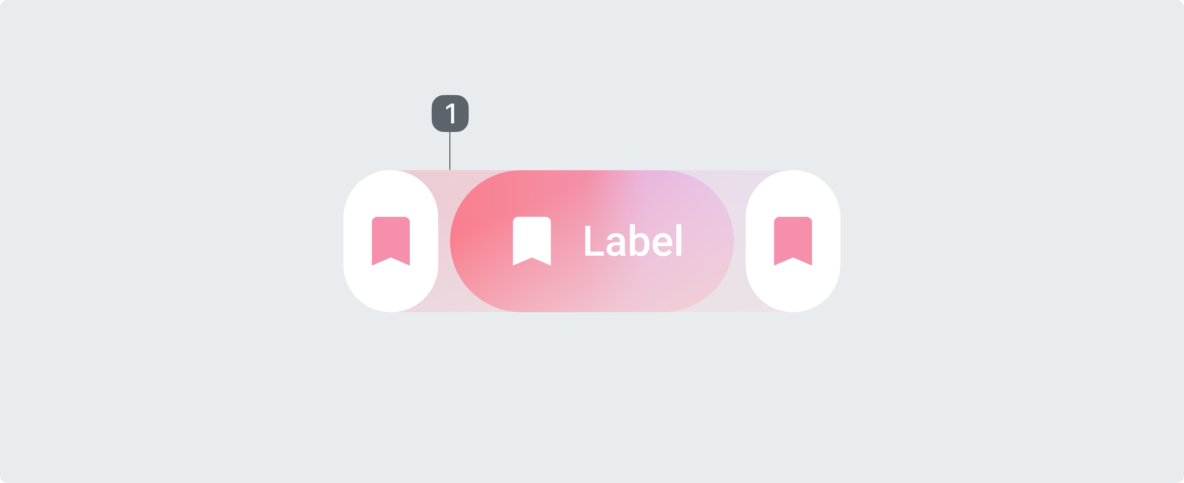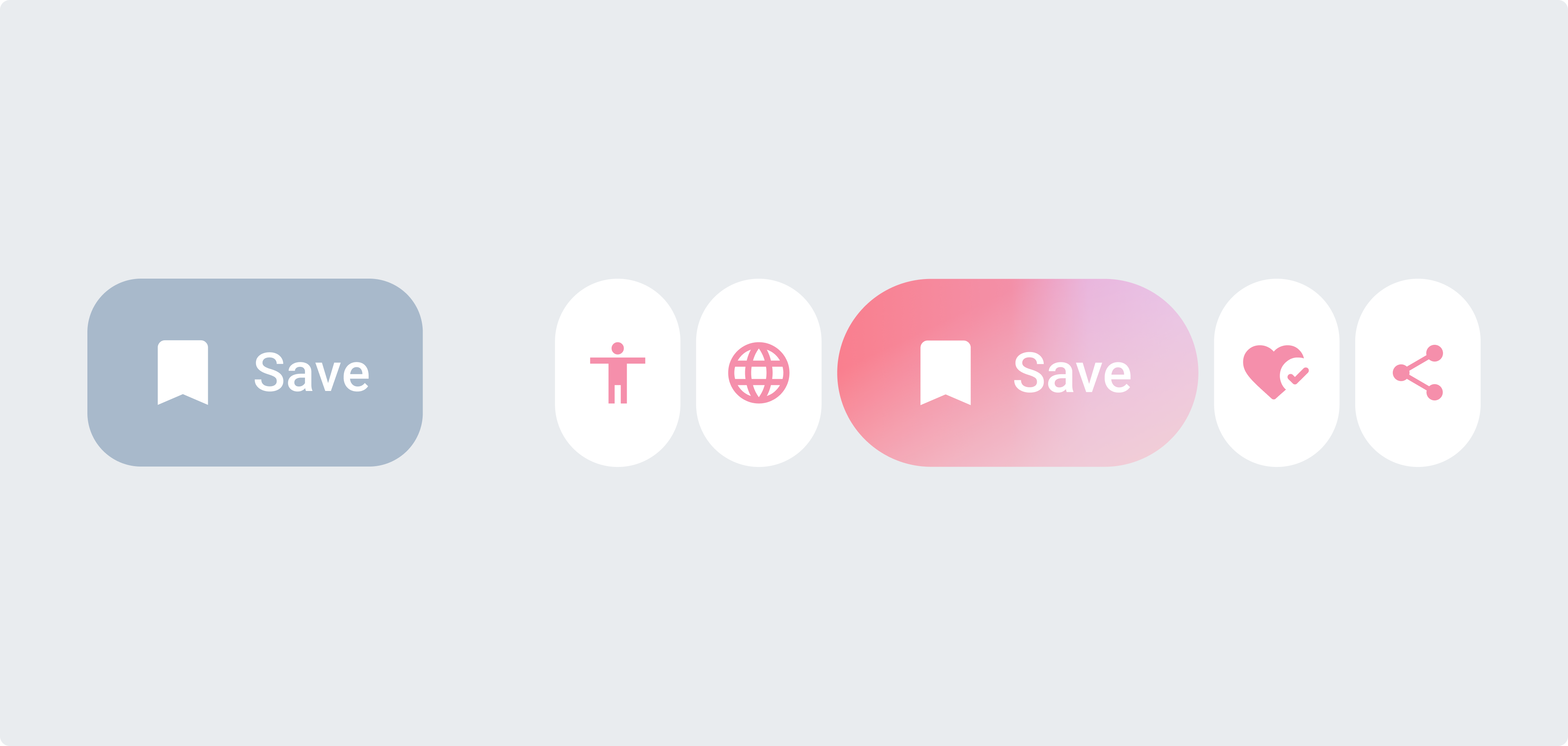每個(gè)按鈕都保持圓潤(rùn)的形狀,并且按鈕之間有一定的間距。在此組中,選定的按鈕可以改變寬度或形