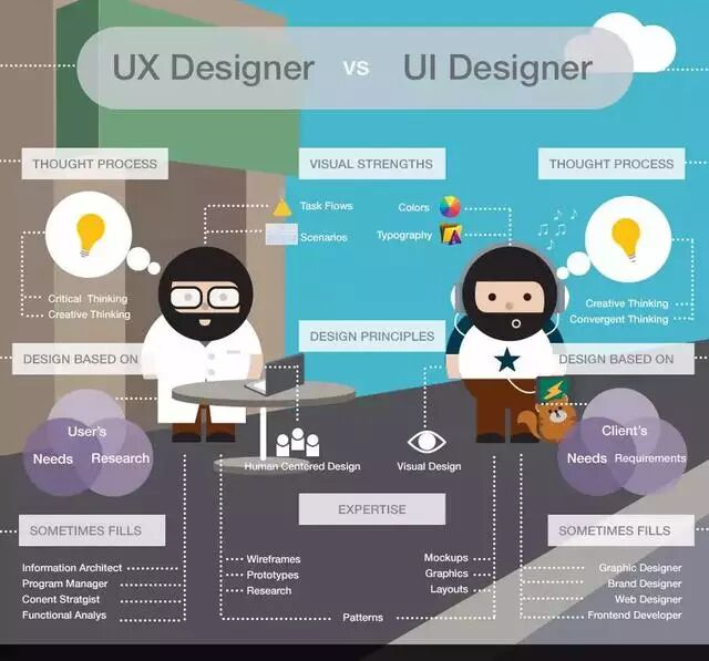 總結(jié):UI設計是展現(xiàn)視覺層面的(界面),而UX是使用過程中的情感(互動與體驗)。UX設計師不僅關注界面的設計,更關心所有會影響使用者體驗的一切。如架構(gòu)、互動、內(nèi)容與及使用者對象、需求、價值觀。