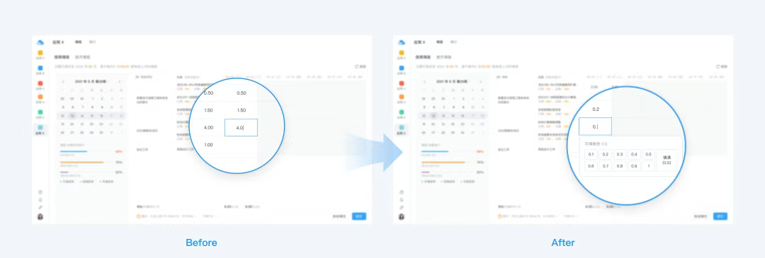 在業(yè)務改版時,我們的體驗設計師了解到舊版頁面信息錄入成本過高的問題,于是提出了數(shù)字鍵盤錄入數(shù)據(jù)的方案「用戶在原本手動錄入數(shù)據(jù)的基礎上,增加選擇錄入數(shù)據(jù)的能力,以此降低用戶錄入數(shù)據(jù)的操作負擔」。