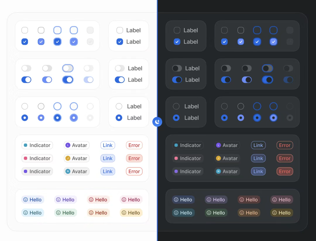 在桌面端設計中,大圓角應用需考慮屏幕尺寸差異。Windows 11 的窗口采用 28px 圓角,在大尺寸顯示器上營造輕盈懸浮感;而設計軟件 Figma 的工具欄按鈕則采用適中圓角,避免過度圓潤導致的操作辨識度下降。此外,大圓角還可與陰影、漸變結(jié)合增強層次感,如蘋果 macOS 的控制中心,通過 24px 圓角與柔和陰影,打造出符合物理直覺的 “半透明毛玻璃” 效果。
