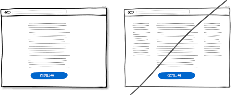 單列布局能夠讓對全局有更好的掌控。同時用戶也可以一目了然內(nèi)容。而多列而已則會有分散用戶注意力的風險使你的主旨無法很好表達。最好的做法是用一個有邏輯的敘述來引導用戶并且在文末給出你的操作按鈕。