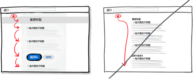為了滿足各式用戶的需求,在頁面上放些鏈接鏈到這里鏈到那里是常見的做法。如果你的主要目的是想讓用戶點擊頁面最后那個下載按扭什么的話,就需要三思了。因為用戶可能點擊了其他鏈接離開頁面了。所以你需要注意頁面的鏈接數(shù)量,最好將用于導航與用于操作的鏈接用樣式區(qū)分開。盡量移除頁面不需要的鏈接會讓用戶點擊到你的功能按鈕。