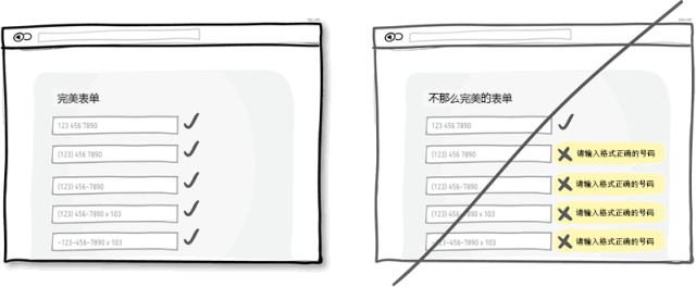 對用戶輸入的數(shù)據(jù),盡量放寬限制,包括格式,大小寫什么的。這樣做可以更人性化一點,也使得界面更加友好。一個再恬當不過的例子就是讓用戶輸入電話號碼的時候,用戶有很多種輸入方式,帶括號的,帶破折號的,帶空格的,帶區(qū)號和不帶區(qū)號的等等。如果你在代碼中來處理這些格式的問題,代價也只是你一個人多寫幾行代碼而以,卻可以減少無數(shù)用戶的工作量。