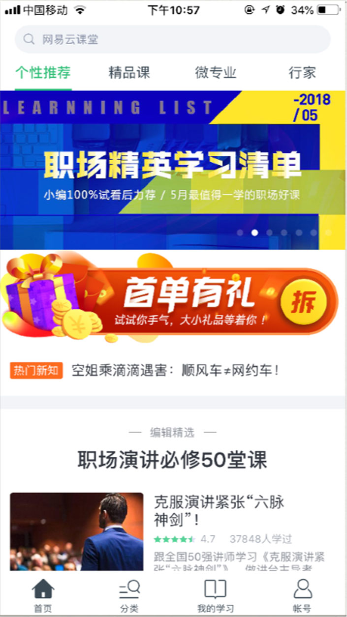 1.首頁(yè)根據(jù)產(chǎn)品的不同特色,設(shè)置了二級(jí)導(dǎo)航,將個(gè)性化、精品課、微專 業(yè)、行家作為二級(jí)導(dǎo)航標(biāo)題,既能用來(lái)統(tǒng)一呈現(xiàn)特色內(nèi)容,又能保證頁(yè)面信息的 層級(jí)關(guān)系清晰明了;