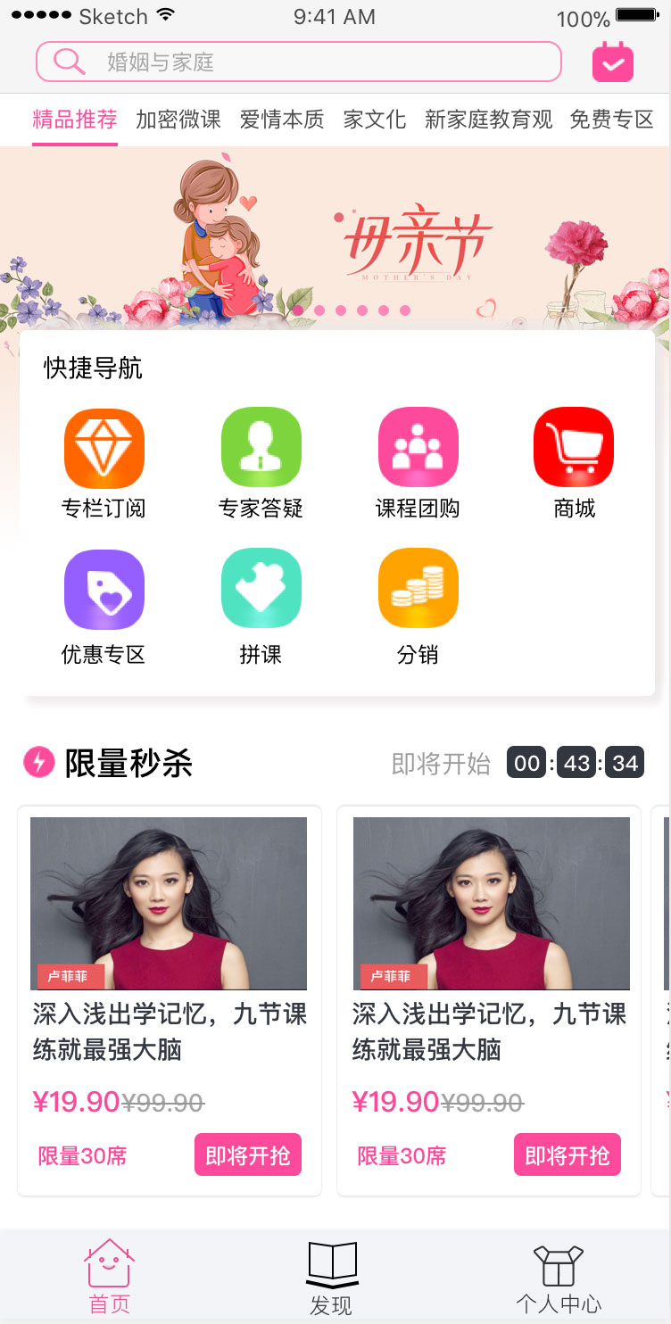 1.首頁(yè)根據(jù)產(chǎn)品的不同特色,設(shè)置了二級(jí)導(dǎo)航,將、婚姻、家庭關(guān)系、戀愛、 母嬰、育兒等分類作為二級(jí)導(dǎo)航標(biāo)題,既能用來(lái)統(tǒng)一呈現(xiàn)特色內(nèi)容,又能保證頁(yè)面 信息的層級(jí)關(guān)系清晰明了;