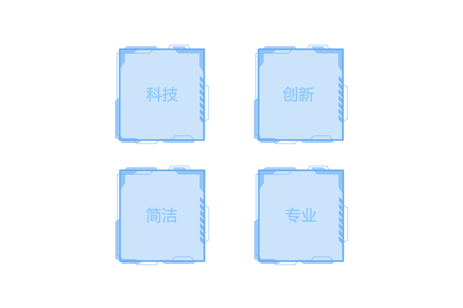 界面整體采用深藍(lán)背景,通過背景圖案展示界面的縱深感。富有科技感的邊框和線條來凸顯界面的科技感。數(shù)據(jù)展示和控件在主色調(diào)的基礎(chǔ)上運(yùn)用一些鮮明色作為點(diǎn)綴,即豐富了頁面也突出了要展示的信息。