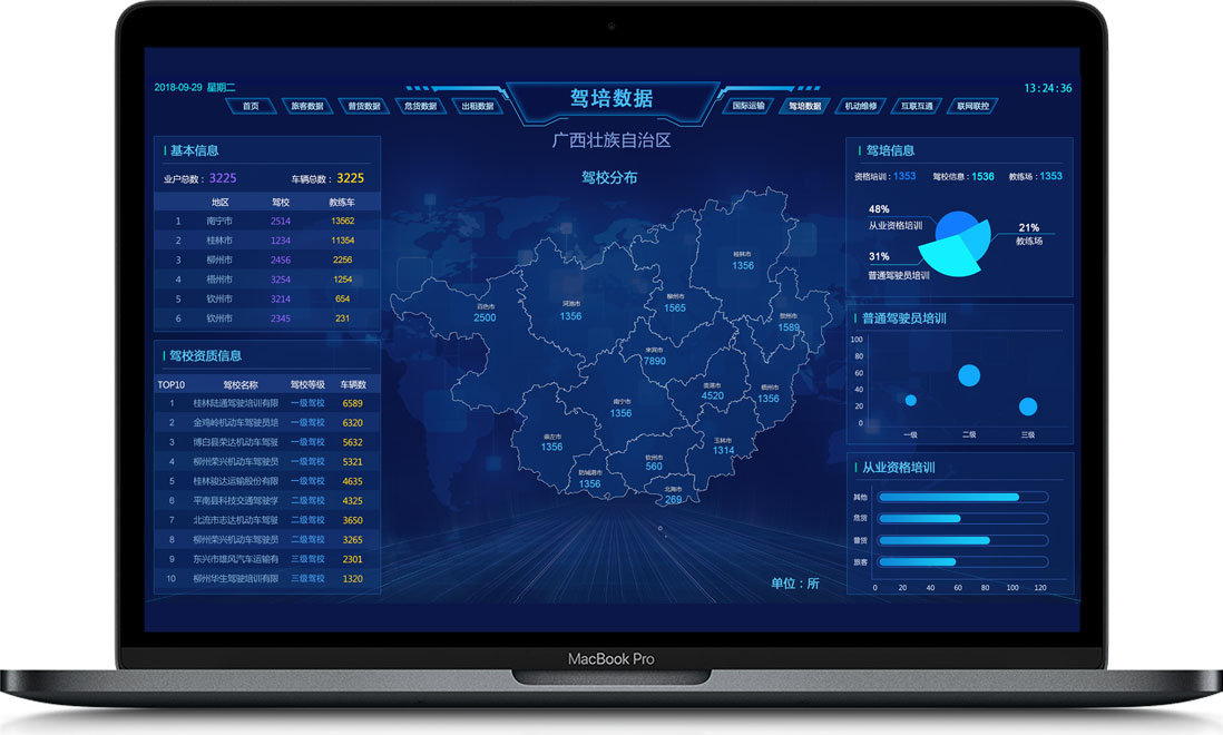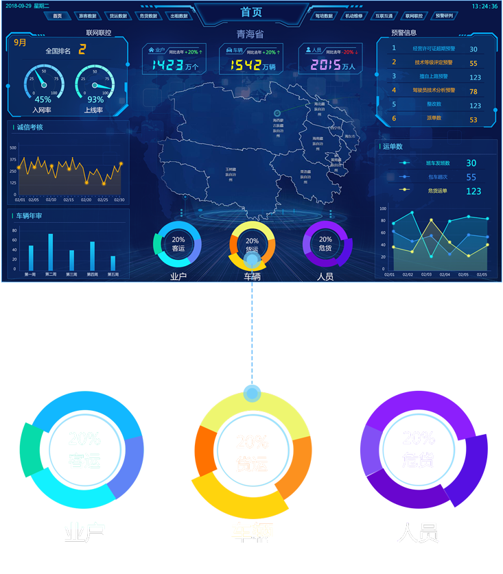 行業(yè)態(tài)勢展示了道路交通運(yùn)輸行業(yè)的基礎(chǔ)數(shù)據(jù)和走勢,實(shí)時反映行業(yè)的運(yùn)行狀態(tài),將采集的數(shù)據(jù)形象化、直觀化、具體化。為了加強(qiáng)某些重點(diǎn)工作,我們還需加入“聯(lián)網(wǎng)聯(lián)控”、“互聯(lián)互通”等相關(guān)專題。系統(tǒng)所具備的數(shù)據(jù)管理能力可將現(xiàn)有的數(shù)據(jù)進(jìn)行有效的整合,快速準(zhǔn)確地提供報表并提出決策依據(jù)。